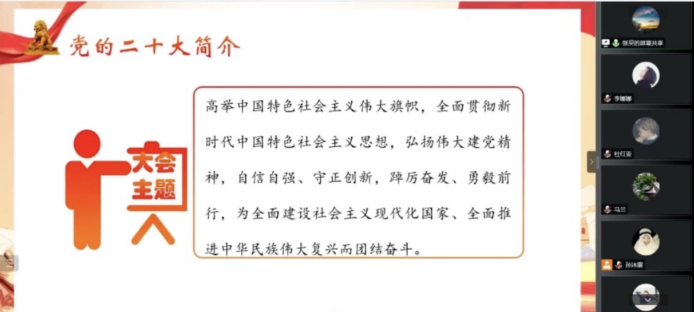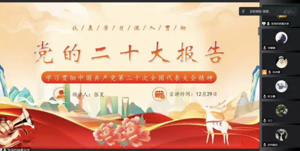 行政党支部、研究生第一党支部、研究生第二党支部于2022年12月29日下午汇聚云端,共同学习了“永远跟党走 奋进新征程——学习贯彻党的二十大精神”主题党课。本次党课由雷电竞
