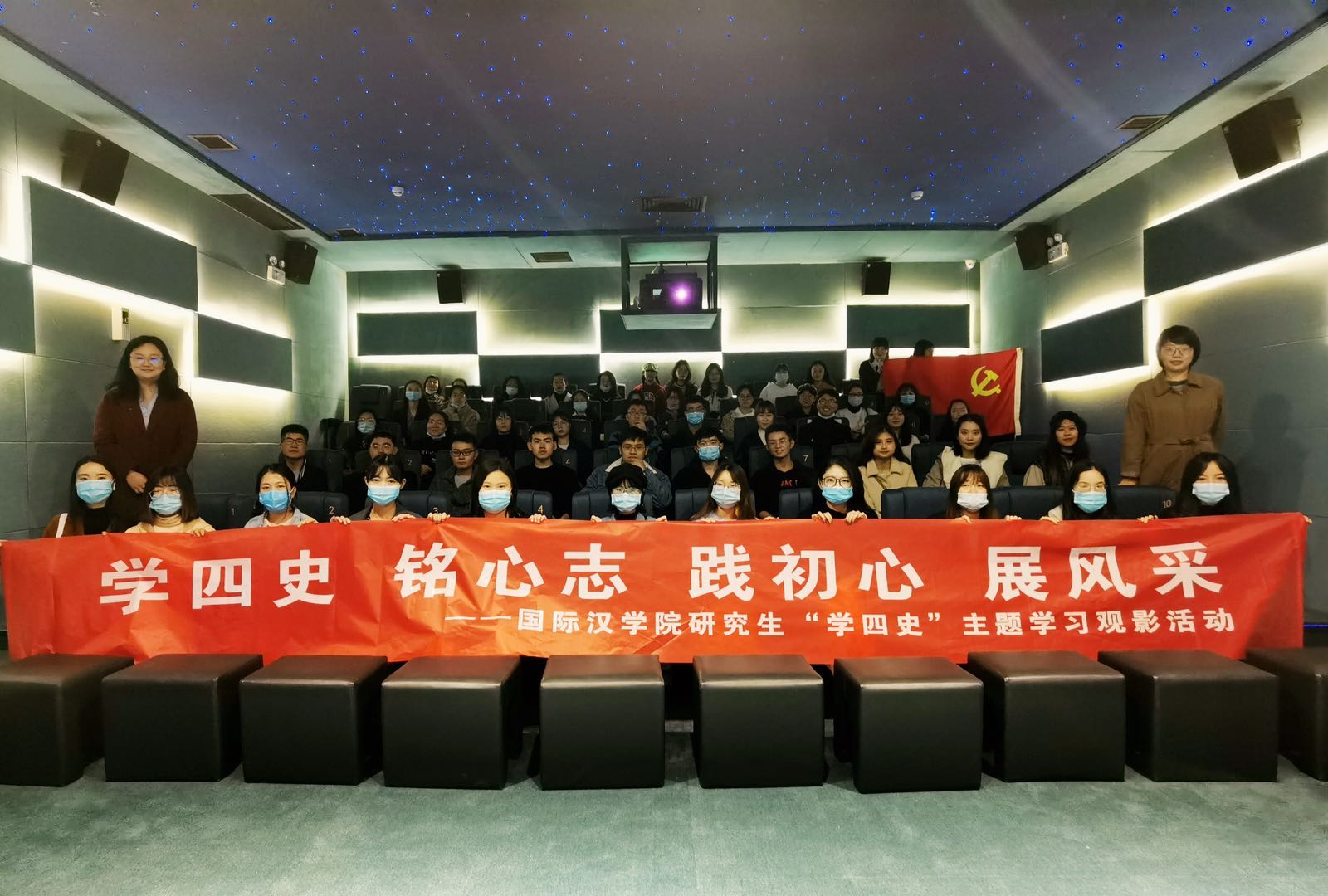 全体研究生党员、预备党员及入党积极分子在影院观看了电影《金刚川》。