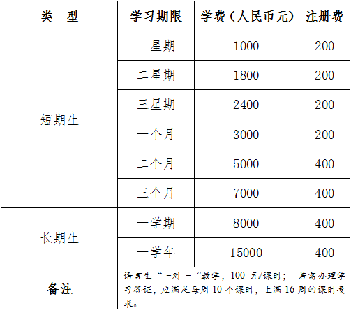 分春秋两季招收留学生,学习时间均为18周;根据汉语水平程度分设初级、中级、高级等6个水平教学班。有攻读学位需求的学生在通过相关考试后可申请插班入读雷电竞