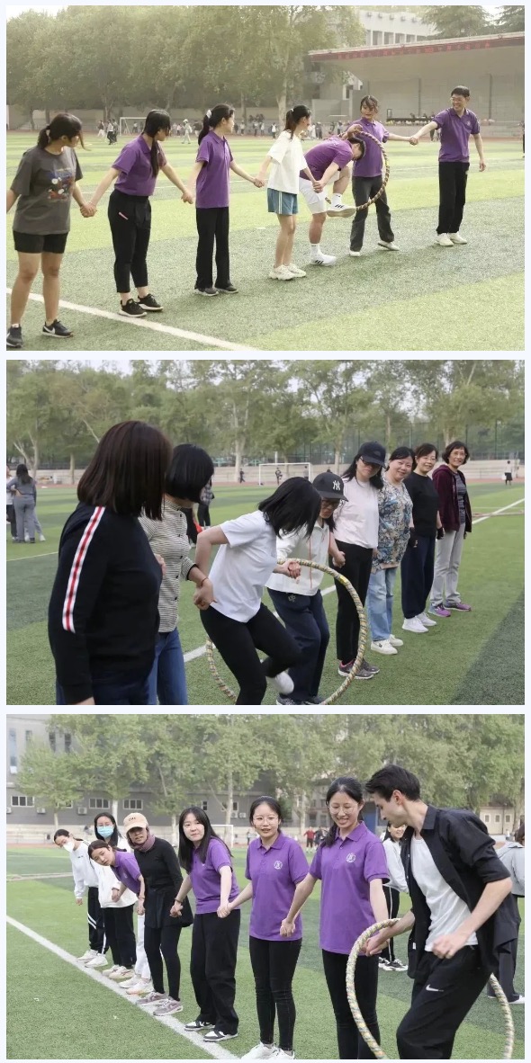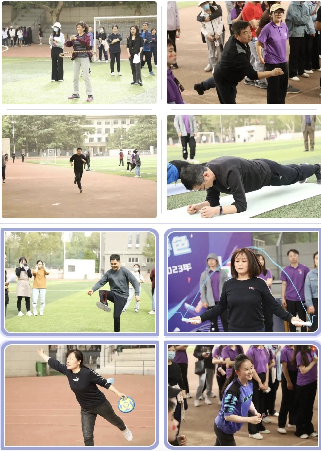 首先是个人赛项目,每一个选手都积极参与,为自己而战,在竞争中提高、在拼搏中学习。同学们个个青春洋溢,活力满满,朝气蓬勃。老师们当然也不甘示弱,他们大显身手。在赛场上留下了一个个精彩瞬间。接下来是团体赛项目,选手们8人为一队,相互配合,共同合作。第一个项目——袋鼠跳。同学们姿势各异,全力拼搏,欢声笑语中结束了一轮轮游戏。接下来,“一圈到底”,这是用一个呼啦圈穿过手拉手的八位选手,讲究协调配合,大家提前训练,寻找最快解锁办法。动力跳绳考验得是选手们的敏捷性,大家聚精会神,找准时机跑过去,轻巧一跃,留下一个个充满活力的背影。拔河比赛让我们体会到“友谊第一,比赛第二”的体育精神。在这个项目中,雷电竞(Raybet)中国官方网站