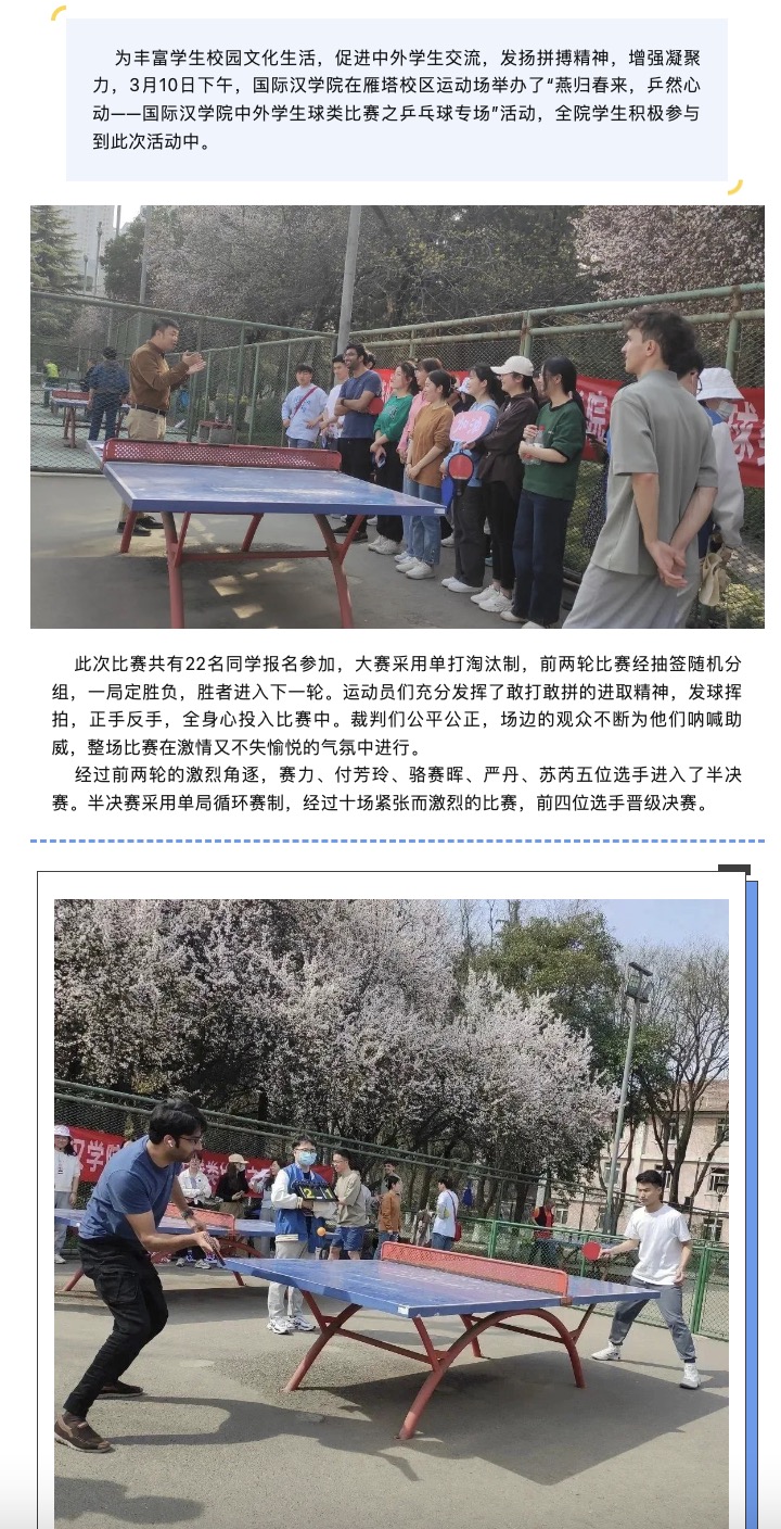 “燕归春来,乒然心动”中外学生乒乓球比赛圆满结束