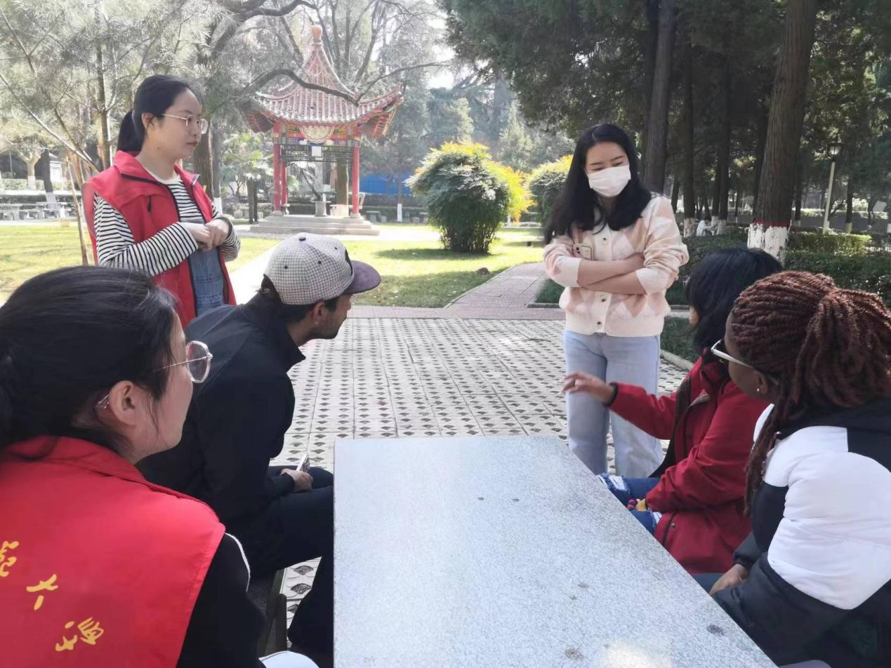 第二组志愿者们负责帮助新入学的留学生熟悉校园环境,为他们答疑解惑,让他们在异国他乡感受到了温暖与关怀。