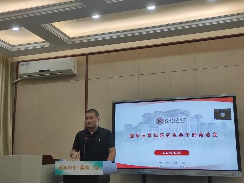 学生干部竞选会,会议由院研究生会主席团成员梁蕾主持,团总支书记兼研究生辅导员朱红楠、2021级学生骨干出席并担任评委,全体2022级研究生新生参加会议。