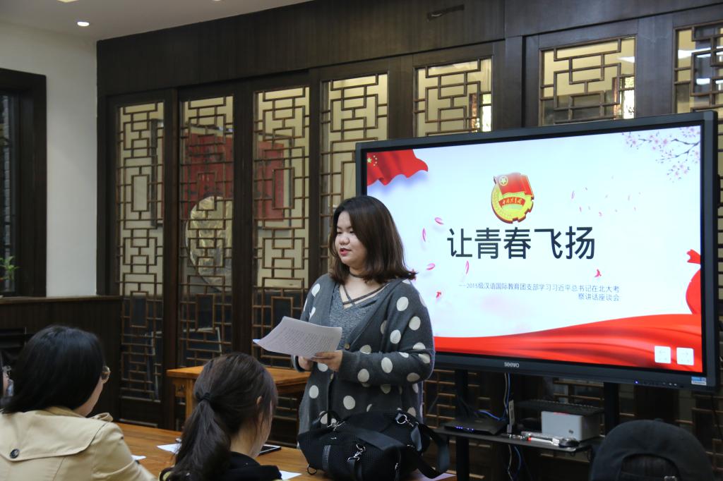 唐风汉语教室开展了“学习习近平总书记在北京大学师生座谈会上的讲话”主题教育活动。活动由本科生党支部宣传委员包昱和团支部书记孙达静文共同主持。