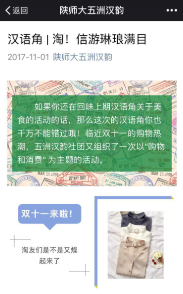 联合五洲汉韵社团以“购物消费”为主题开展了一次面向中外学生的汉语角沙龙活动。中外学生就各自的网购经历、消费习惯进行了分享,了解了各个国家民众不同的消费心理特点;中国学生向外国留学生梳理介绍了中国发达的网络购物模式体系以及多种消费支付方式,并提醒外国留学生注意网贷陷阱及网络传销组织,避免因汉语水平不高、不了解中国网络舆情及法治监管体系等原因而遭遇网络诈骗。