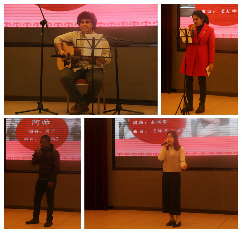 副教授周利芳、特聘音乐教师周茹洁、留学生办公室主任朱卫强、团总支书记谢婷、留学生办公室黄璐担任评委。