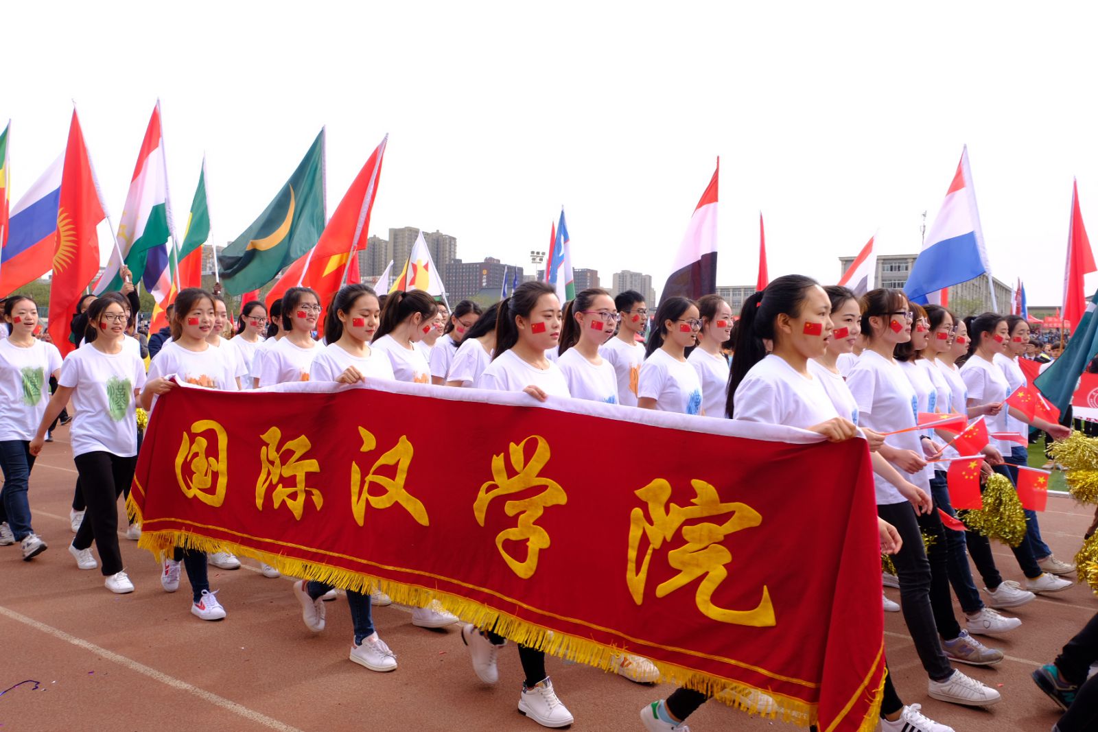 “五洲青年,魅力无限,同舟共济,携手向前”。伴随着响亮的口号,国汉院中外学生共同组成了绿、蓝、红、橙四种颜色的方阵,昂首挺胸,迈着整齐的步伐走过主席台。多国国旗猎猎飞扬,精心设计的“汉”字方阵造型,象征着Raybet
