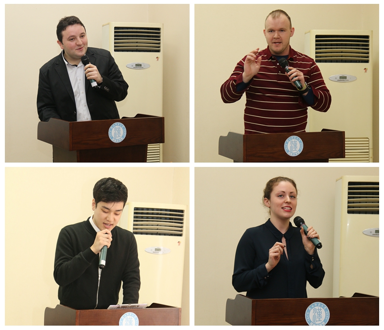 来自韩国的本科生吉浩成、来自俄罗斯莫斯科国立师范大学的交换生茱莉亚和来自美国福布莱特-海斯奖学金项目的交换生杜安鹏作为新生代表分别发言。他们表示,正是由于对汉语言和中国传统文化的热爱让他们来到中国、来到西安,在陕师大短短半个月的时光已让他们体会到这所学校的典雅、热情和厚重。他们表示自己一定会珍惜学习机会,不惧挑战,不断积累,最终实现“苦尽甘来”的目标。