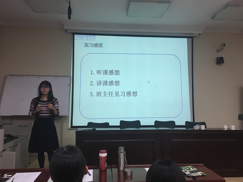 吴媛老师首先进行了简短发言,她向同学们阐述了此次实习汇报会的意义、目的、宗旨,并鼓励同学们展示自己最真实的实习情况和最美的实习风采。