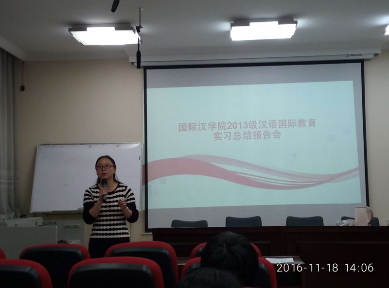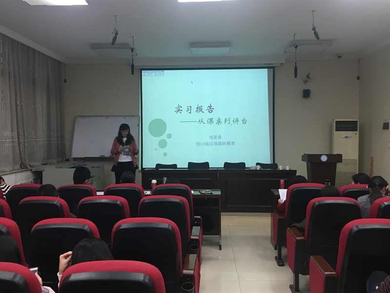 2013级汉语国际教育专业实习报告会在教学二楼一层报告厅成功举行。此次报告会意在报告实习成果,反思实践过程,交流教学经验。