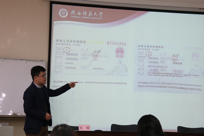 留学生管理办公室黄璐老师从签证办理、课堂考勤及日常学习等方面给新生们做了系统的入学教育,为他们在陕西师范大学留学的学习和生活做了全面的指导。