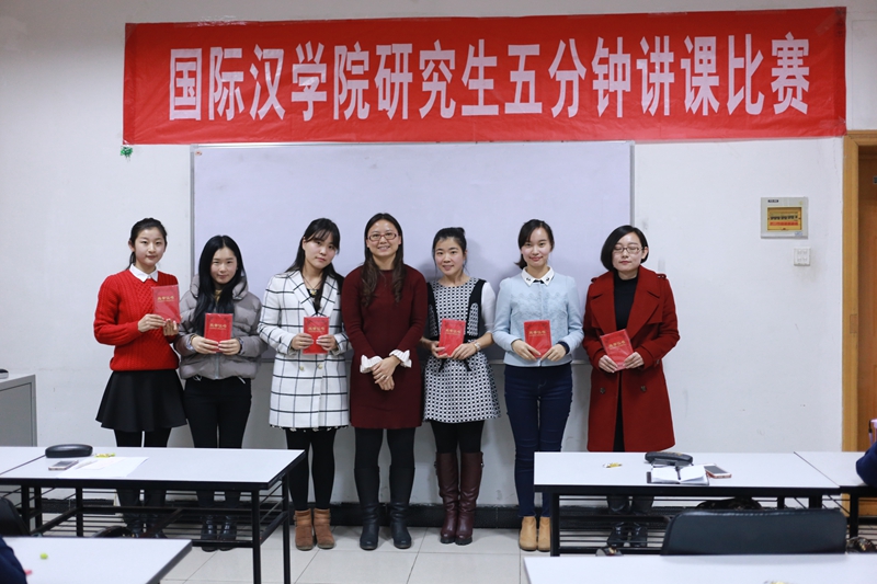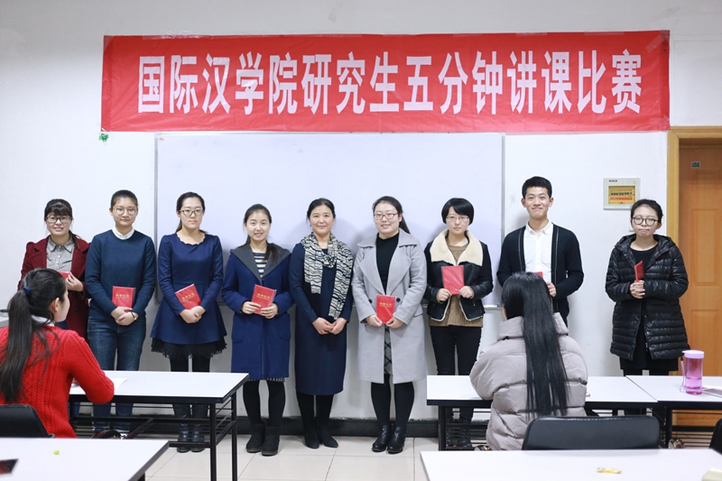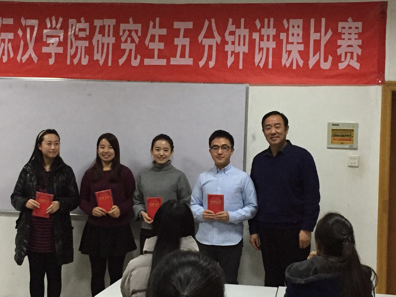 比赛评出一等奖4名、二等奖6名以及三等奖8名。汉语国际教育硕士专业的蔡靖、李洋溢、李欣然及杨长江同学获得了一等奖,刘园、王婷婷、曹聪聪、李春梅、刘婷、张露6位同学获得二等奖,马千里、尹丹、刘梁影、高子涵、吴梦珂、戚凤泽以及应用语言学专业的魏真凡、伍凌鋆8位同学获得了三等奖。