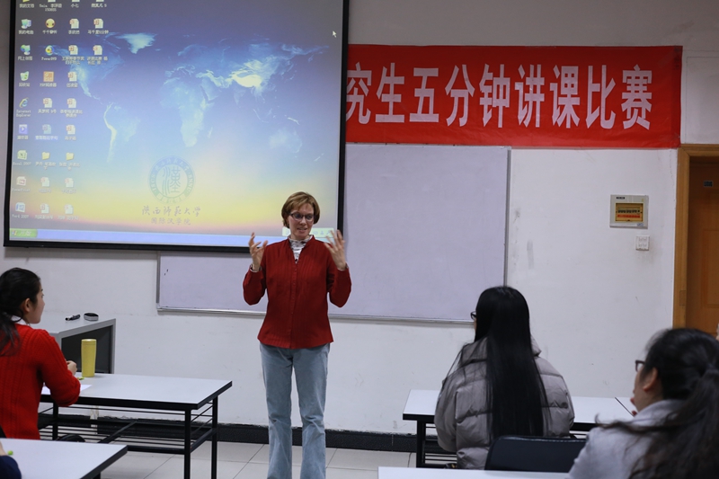 最后,Crista Cornelius女士对本次比赛进行了总结,同时提出了宝贵意见。刘乐宁教授上台对各位选手的表现作了细致恰当、角度独到的点评,并且对同学们优缺点一一提出表扬与指导。