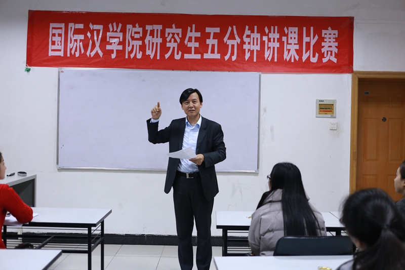 副院长刘琨主持了本次比赛。决赛开始前,由刘琨老师详细介绍了比赛规则,决赛采取现场打分、现场公布结果的形式。各位同学采取讲授法、练习法、直观演示法等丰富多彩的教学方法对自己准备的、以不同学习阶段的留学生为教学对象的知识点进行讲解,比赛现场热情洋溢、气氛活跃。