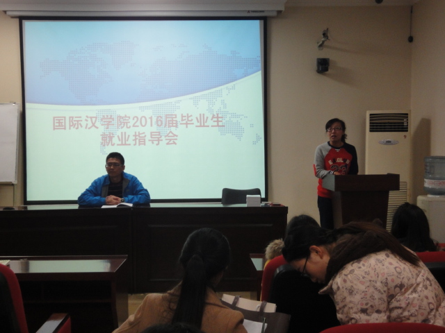 实际情况和近几年的就业形势与毕业生做了交流。他指出,近几年来我校毕业生就业率持续上升,鼓励毕业生要充满信心,争取早日实现自己的职业梦想。同时,他提醒各位毕业生提前做好心理准备应对影响就业的因素,鼓励学生们要端正就业态度,提高专业能力。吴殿华老师祝愿毕业生们以端正的态度、坚定的决心、不抛弃不放弃的信念,争取早日实现自己的职业梦想。接着胡丹老师结合毕业生就业指南的政策与就业协议书使用进行了细致讲解。胡老师从信息渠道、求职材料、就业信息获取、面试等方面介绍了实用的就业技巧。同时,结合就业流程和协议书的签订介绍了相关的法律及政策规范。