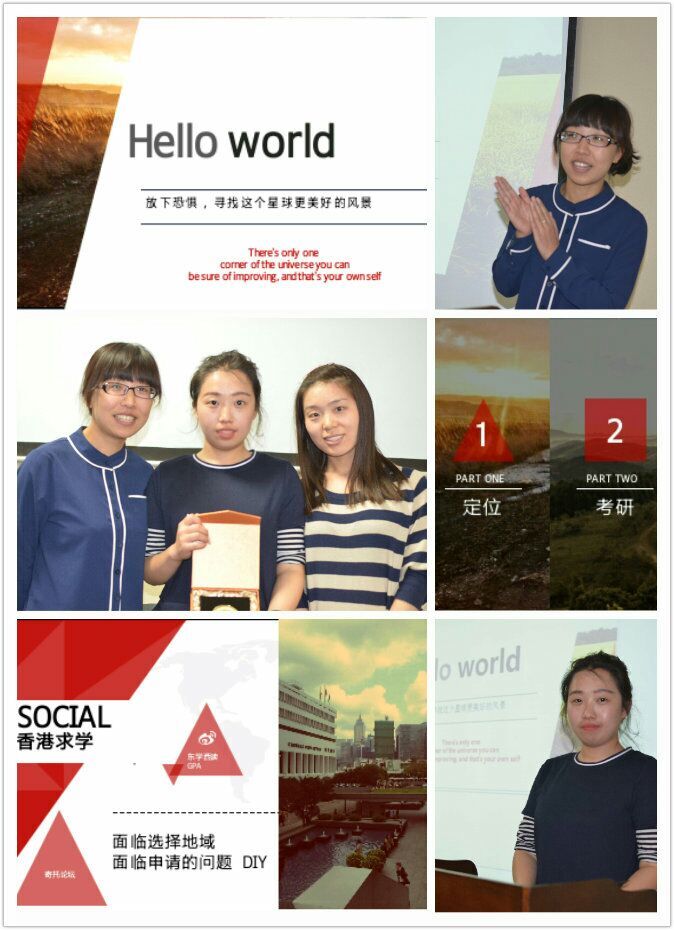 香港理工大学凌晨灯火通明的图书馆照片,学姐硕士期间密密麻麻的成绩单……在郭荣学姐的娓娓道来中,大家了解到了在港求学的不易和新鲜。她结合自己的感受,善意提醒大家要注意提前适应粤语日常交流,并积极加强和学术大牛的沟通交流。同时,期望有志于在香港深造的同学,适当延长自己的在港学习生活,利用香港发达的信息交互,更深入地思考个人未来的发展走向。