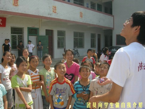在操场上,孩子们集合在一起,支教团的团员们向大家进行了简短的自我介绍,试图在较短时间里和孩子们熟悉。同学们聪明活泼,很快便认识了这十二位来自雷电竞