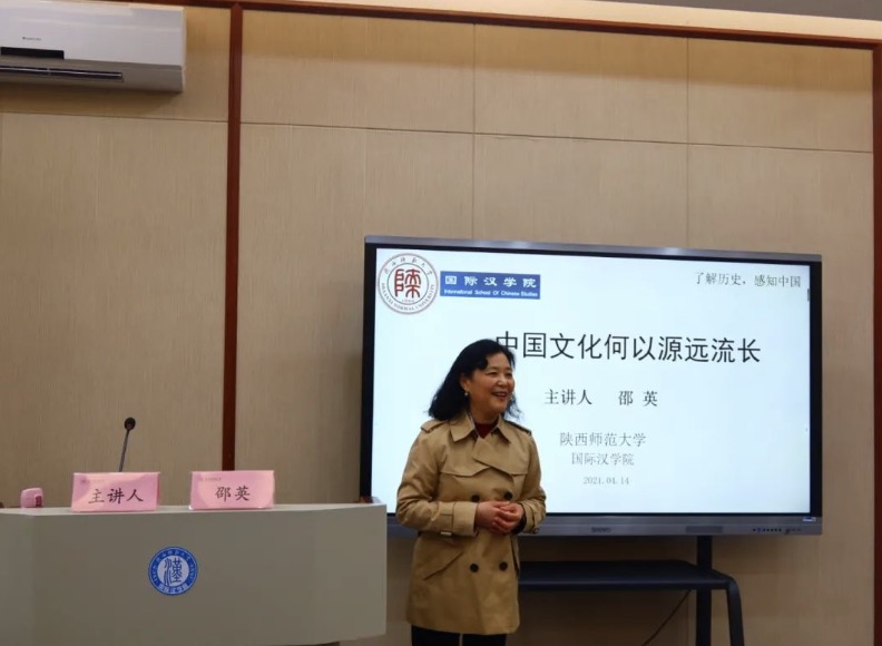 邵英副教授用幽默生动、浅显易懂的语言分别从自然地理上的中国、文献中的中国、文字中的中国、考古中的中国和民俗中的中国五个角度阐释了中华文化得以源远流长的缘由。她强调,中国在长期交往中逐渐形成了五十六个民族多元一体的格局,中国历史是民族融合的历史,中华民族的灿烂文化是五十六个民族的共同创造。八千多年来,在这片土地上经历了各种坎坷和巨变,而汉字在中国历史进程中却从未中断过,由目前发现的最早形体甲骨文发展而来,具有考古学意义上的古文物价值,这些字形都是我们了解中国先民的重要观念。