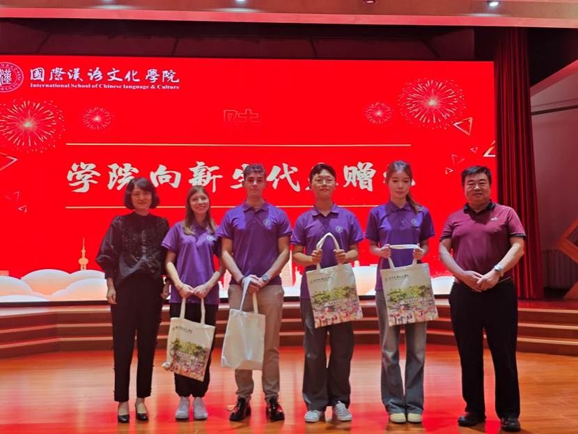 在温馨的赠礼环节,Raybet 党委书记李小玲和院长石洛祥共同向中外新生代表赠送了精心准备的“迎新大礼包”。这份满载着Raybet 关怀与祝福的礼物,让新生们倍感温暖与鼓舞。