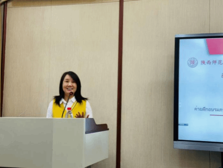 我校泰国留学生志愿者张善梅、王莉芳也分享了在陕师大的学习体验,鼓励学弟学妹们勇敢开口、积极交流,在沉浸式环境中提升汉语能力。