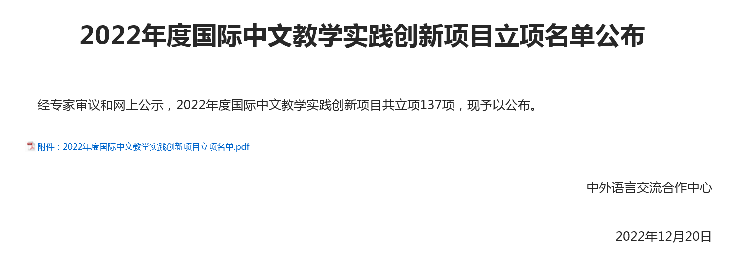 近日,“语合中心”公布了“2022年度国际中文教学实践创新项目立项名单”,雷电竞(Raybet)中国官方网站