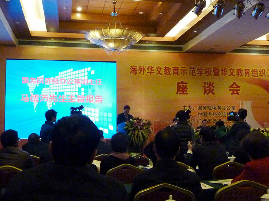 11月26日至30日,由中国国务院侨务办公室、中国海外交流协会主办,广西壮族自治区侨务办公室、广西海外交流协会承办的首届海外华文教育示范学校暨华文教育组织工作座谈会在广西南宁市召开。国务院侨务办公室副主任马儒沛、国务院侨务办公室部分项目官员以及中国国内华文教育基地院校代表、海外华文教育示范学校代表和部分华教组织代表、有关省市侨办代表300余人与会,共同探讨新时期华文教育发展之道。我校雷电竞