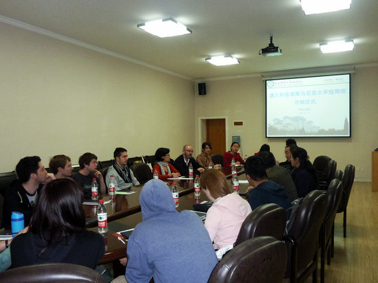 副院长Mark Harrison博士、澳方带队老师林嘉惠博士及十名澳方学生参加了开班仪式。仪式由留学生管理办公室冯伟老师主持并翻译。
