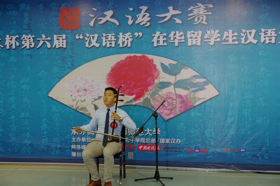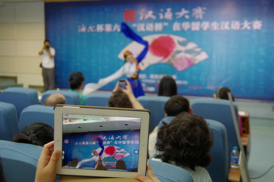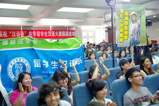 我校其他选手也纷纷登场,来自越南的陈氏娥声情并茂地演绎了梁山伯与祝英台的爱情故事,来自美国的张牧晗演奏了精彩的二胡曲《赛马》,来自日本的宇田康助表演了日本少林拳,同时对中国人民在日本东北大地震后向日本提供的帮助表达了感谢之意。来自其他高校的选手也表演了吉他弹唱、民族舞蹈等精彩节目,场下的啦啦队员为选手摇旗呐喊,鼓掌加油,热烈的气氛一浪高过一浪,现场成为了欢乐的海洋。
