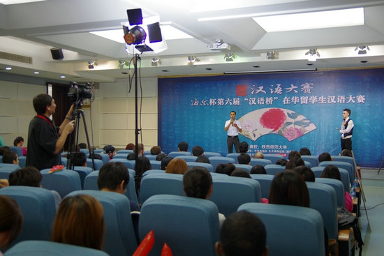 5月21日,第六届CCTV“汉语桥”在华留学生汉语大赛西安赛区预赛在陕西师范大学崇鋈楼学思堂成功举办。来自陕西师范大学、西安交通大学、西北工业大学、西北大学、西安外国语大学等五所高校的17名外国留学生现场秀汉语、赛才艺,展示各自的风采。