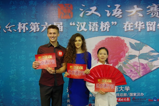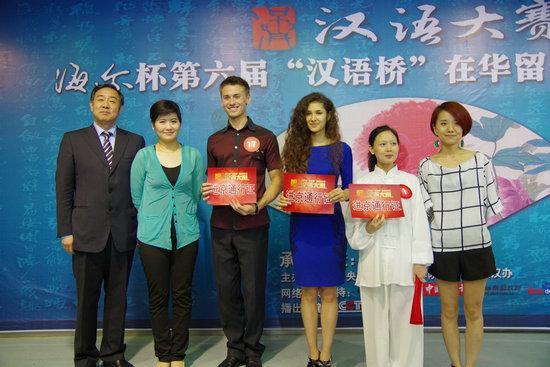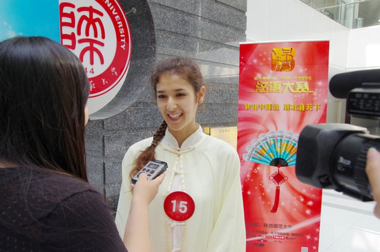 我校韩国留学生金美爱和土耳其留学生郭少鹏也一同进入有望进京的6人候选名单,与来自其他高校的4名留学生一起通过30秒的拉票展示环节竞争另外2名进京名额。最终,来自西北大学的张秋恒和来自西安外国语大学的成大龙幸运地脱颖而出,获得了进京决赛资格。其他进入候选名单的选手还有机会通过央视网(CNTV)、新浪微博、腾讯微博、人人网和微信等方式争取网友支持,通过“网络复活”获得进京决赛资格。