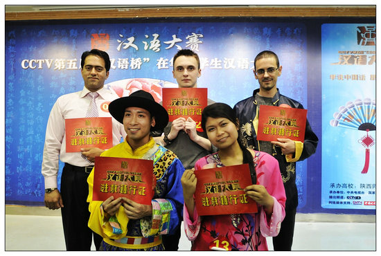 经过激烈比拼,我校的西班牙选手夏巍、越南选手阮春江,西安交通大学的巴基斯坦选手比拉尔、马来西亚选手艾美拉,西安外国语大学的哈萨克斯坦选手提姆拿到了进京通行证。