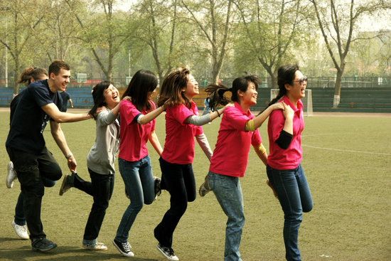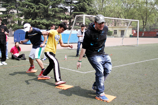 此次运动会还设了“链接加速”、“传递呼啦圈”、“搭桥过河”和“和谐动车”四个趣味项目,接受同学们的当场报名。学生们此时早已不分队伍,随意组队参加,大家真正从游戏中体会到了乐趣和团结的重要性。