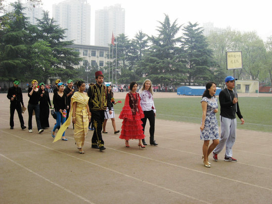伴随着欢快的入场进行曲,中国研究生、留学生及中国本科生等十七支代表队依次进场。他们或穿着具有地域风情的民族服饰;或准备了DIY的道具,或摆出创意独特的pose。整个进场在轻松欢乐的氛围下进行,并独具国际特色。随后,中国学生和留学生共同为大家表演了颇具活力的阳光健身操,点燃了场上的运动激情。