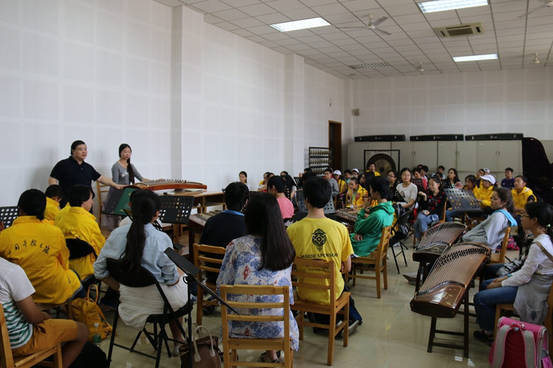 专业教师的指导下学习古筝、二胡、葫芦丝、扬琴、埙等中国民族乐器。