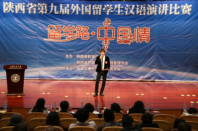 承办的陕西省第九届外国留学生汉语演讲比赛在西安交通大学举行。来自西安交通大学、陕西师范大学、西北大学、西安外国语大学等12所高校19个国家的32名选手以“留学路•中国情”为主题进行了精彩纷呈的演讲。经过激烈的的比拼,由我校选派的埃塞俄比亚选手赵永亮、韩国选手徐甜雨获得二等奖,奥地利选手朱莉亚和哈萨克斯坦选手刘帆获得三等奖。