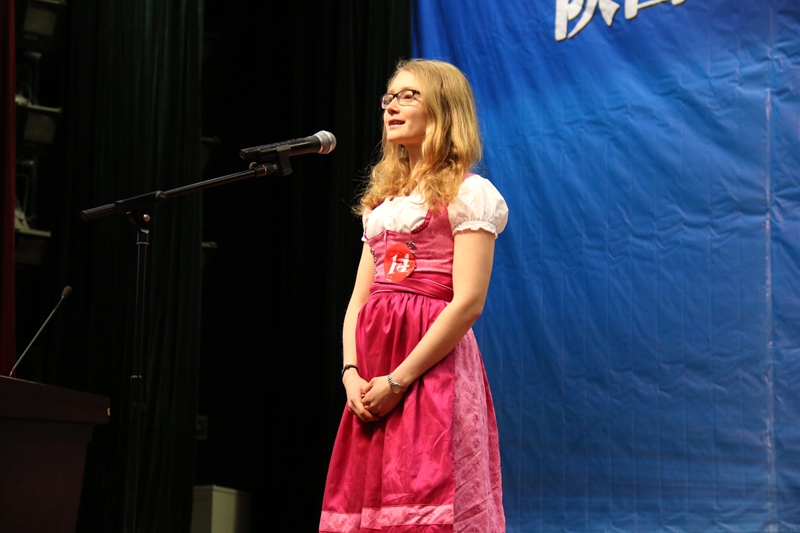 我校留学生赵永亮以《最好的方法是中国的方法》为题,声情并茂地讲述了富人和乞丐的故事,借由故事引入中非友好关系问题,感谢中国政府对非洲各国的技术援助,获得评委老师和在场观众的满堂喝彩;“韩国美女”徐甜雨以澳洲旅行偶遇中国追求者为开场,讲述了自己与中国的种种不解之缘,她立志要学好汉语,与中国谈一场轰轰烈烈的“恋爱”;哈萨克斯坦东干族学生刘帆从生活细微之处发掘话题点,与大家分享了自己和来自也门的“奇葩舍友”因为语言和文化差异碰撞出的各种趣事,幽默诙谐的风格引得全场观众开怀大笑;“金发碧眼”的奥地利姑娘茱莉亚向大家娓娓道来自己在中国留学三个多月的经历,在场留学生感同身受,用掌声为她送上鼓励和祝福。