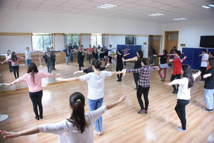 兴趣课堂于20日下午2点30分准时开课,热身运动完毕之后,罗燕老师首先从最基本的拉丁舞站姿开始教起,示范练习之后,逐步加深到简单的舞步行进。这看起来简单的几个舞蹈动作,却着实难倒了在场的初学者们。罗燕老师耐心地从胯部扭动技巧、脚步滑动姿势及整体身形摆动等方面给大家进行示范纠正,不一会儿的功夫,学生们原本散乱的动作也变得有模有样起来。几轮集体练习之后,罗燕老师将在场学生五五分组,并让他们按组将所学进行展示,兴趣课堂在学生们相互点评及罗燕老师的单独点评之中圆满结束。罗燕专业细致的演示讲解,得到了在场学生的一致好评。韩国籍学生崔先咏表示,她之前就对拉丁舞非常感兴趣,感谢学校提供一个免费的机会让她学习,她将持之以恒,继续参与后续课程。
