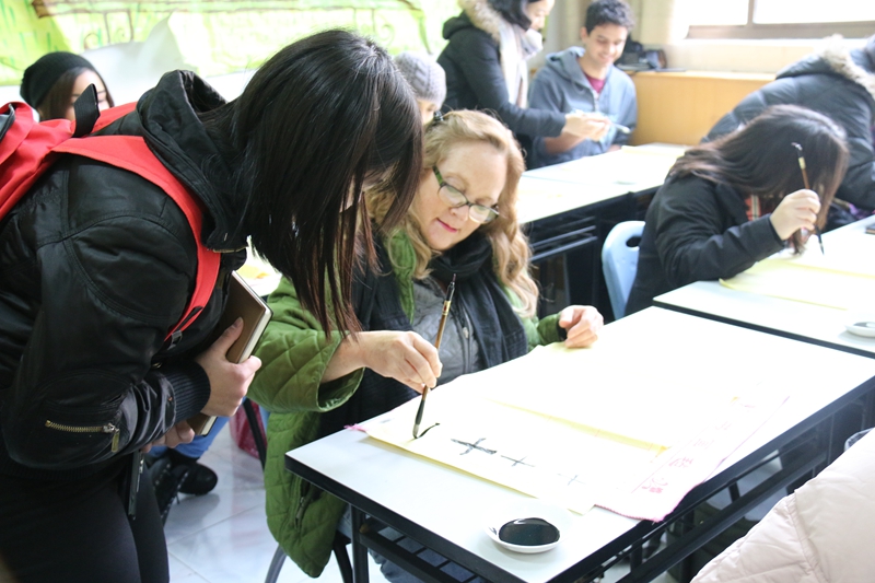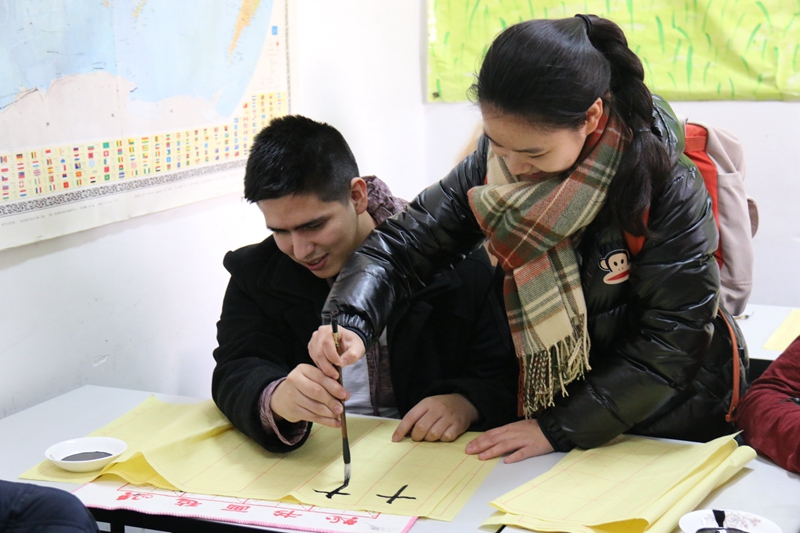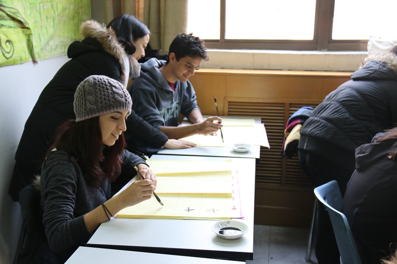 为来访师生安排了历史文化讲座及中国书法体验活动。在中国学生的陪同下,美方师生体验了博大精神的中华文化和汉字魅力。