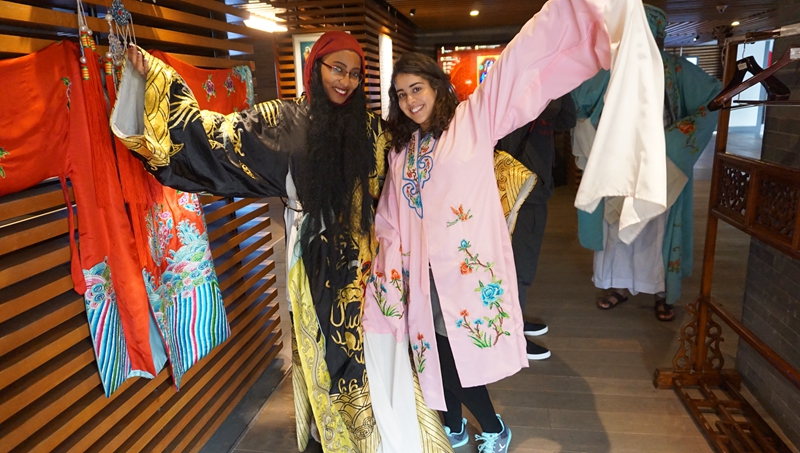 奖学金项目的资助单位,我们每个奖学金生都期待能够亲自去一趟汉办看看,这个愿望终于得以实现。在孔院总部大厅,我们好不容易才找全了每个同学国家的国旗,并且纷纷合影,同时还在文化体验室里试穿戏服、感受传统乐器、体验剪纸乐趣、参与中华文化知识小测试等等,大家玩得不亦乐乎。