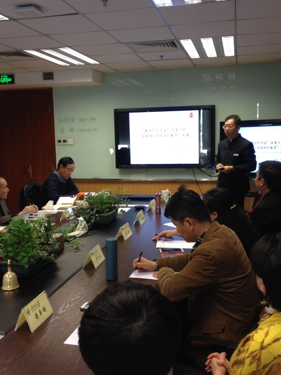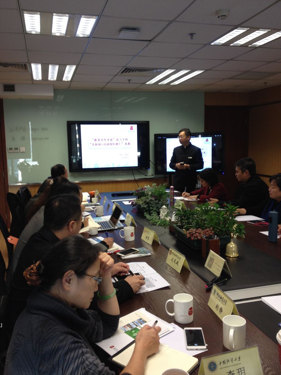 教授、北京语言大学出版社汉语教材总编审、国家汉语水平考试委员会顾问委员会委员、世界汉语教学学会理事刘珣教授在内的来自北京语言大学、北京联合大学、首都经济贸易大学、四川大学、西南大学、江苏大学、中国地质大学(武汉)、郑州大学、云南师范大学、河北师范大学等全国8个省、直辖市的11所高校汉语国际教育和网络信息技术等方面的近30名专家学者,围绕“互联网+华文教育暨汉语国际教学新模式探索”的主体以及唐风汉语在互联网+华文教育暨汉语国际教学”方面的探索和实践成果,就如何通力合作,协同创新,建设优质数字化华文教育教学资源和成果共享平台,实现优质华文教育及汉语国际教学资源开放共享,推进华文教育及汉语国际教学向标准化、专业化、信息化方向迈进进行了深入的研讨。