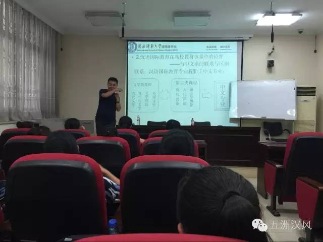 贾泽林老师担任主讲,全面介绍了汉语国际教育是什么、学什么、怎么学。本科生辅导员胡丹老师及2016级汉语国际教育全体学生参加了此次入学教育。