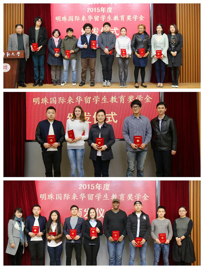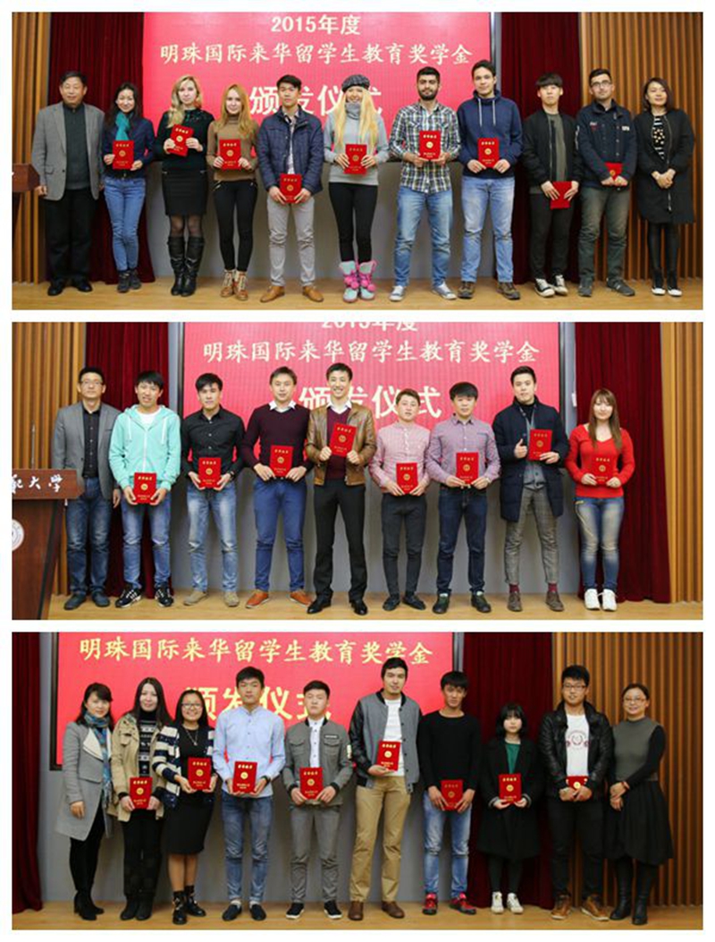 吴媛宣读了《关于颁发2015年度“明珠国际来华留学生教育奖学金”的决定》。宣布我校ALEKENJU ANNABEL(幸运)等51名留学生,刘琨等5名教师获得2015年度“明珠国际来华留学生教育奖学金”,奖励金额共计10万元。
