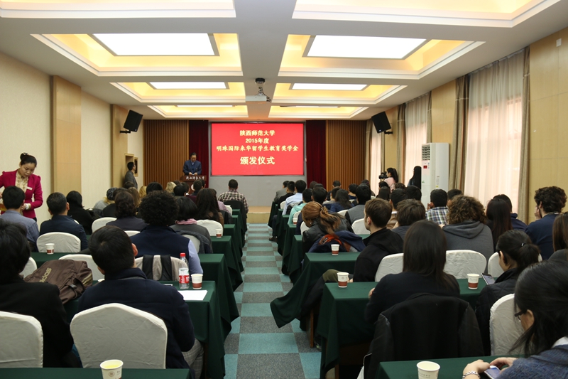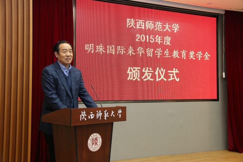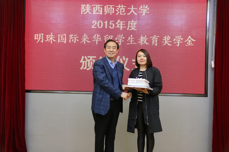 3月25日下午,2015年度“明珠国际来华留学生教育奖学金”颁发仪式在雁塔校区学术活动中心学术会议厅举行。明珠国际家居总裁助理李萌,董事长办公室副主任王博太,我校党委副书记、教育基金会理事长王涛,教育基金会秘书长、校办副主任刘建斌,雷电竞