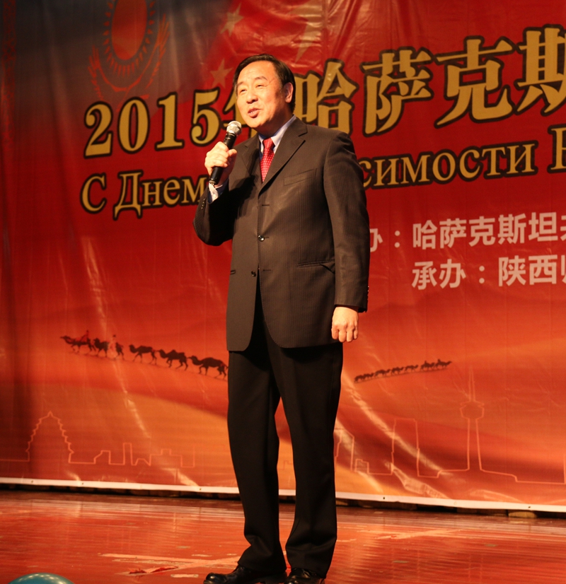 张建成首先代表学校对到场嘉宾表示热烈欢迎,并对哈萨克斯坦留学生迎来第24个国庆独立日表示诚挚的祝福。他说,陕西师范大学作为西北地区最早接收外国留学生的院校,每年吸引众多哈萨克斯坦留学生来校学习,他们是我校最为优秀的留学生团体之一。今天在“一带一路”倡议的大背景下,哈萨克斯坦共和国国庆联欢会在我校举行不仅是对哈萨克斯坦留学生在师大学习的一种褒奖,也是中哈两国友好交流的具体表现。希望哈萨克斯坦东干协会能继续发挥纽带作用,推动中哈教育和贸易交流。