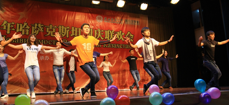 教授王国杰及我校和兄弟院校的近300名哈萨克斯坦及中亚地区留学生欢聚一堂,共话友谊,展望丝绸之路新辉煌。