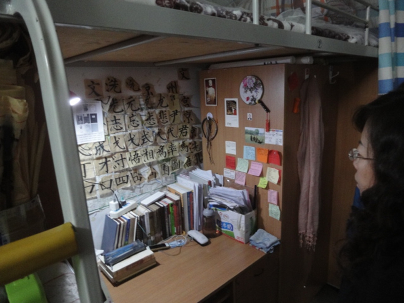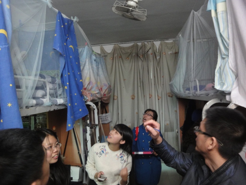 11日,老师们分别检查了2012、2013级女生公寓的宿舍安全卫生情况,一到宿舍楼内,同学们都提前主动站在宿舍门口,以饱满的热情和积极的态度欢迎检查小组的到来,这样的氛围深深感染了到场的每一位老师。他们认真细致的查看同学们日常用品的摆放,检查屋内电线电路等,并不时询问同学们有关学习生活、卫生安全、用水用电等方面的问题,对发现的问题及时提出指导意见,叮嘱同学外出时在关好寝室门的同时也要注意阳台安全。宿舍内不时传来阵阵欢声笑语,整个活动现场洋溢着亲切和谐的气氛。