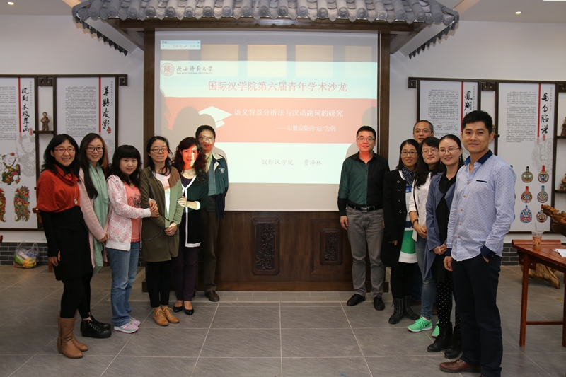 沙龙围绕“语义背景分析法与汉语副词的研究”这一主题展开,贾泽林老师以量级副词“总”为例,具体探讨了语义背景分析法在副词研究和汉语教学中的作用,并简要说明这一分析方法的使用条件和局限性。随后,各位与会老师就自己关心的问题发表看法,并对该项研究提出了中肯的建议。宋林生老师指出在汉语的研究和教学中应积极借鉴《现代汉语八百词》等虚词词典的释义,在前贤研究的基础上展开进一步的研究和讨论;许文军老师建议在考察词的义项时应做到谨慎、客观、周全;王晓音老师就研究中语料选取的问题与老师们进行了讨论;许端老师和曾小梦老师强调语法研究应为教学服务,不断细化;刘琳老师和张欲晓老师对“量级副词”的定义和范围与贾泽林老师进行了讨论;孙建伟老师提出汉语研究中应坚持共时研究和历时相结合。与会的其他老师和研究生也发表了自己的看法和建议。最后,贾泽林老师对各位老师的建议和帮助表示感谢,并表示此次沙龙的举办对自己深化认识所研究的问题非常有益。与会老师也一致认为,青年学术沙龙是一个非常有效的交流平台,希望沙龙能够持续地举办下去。