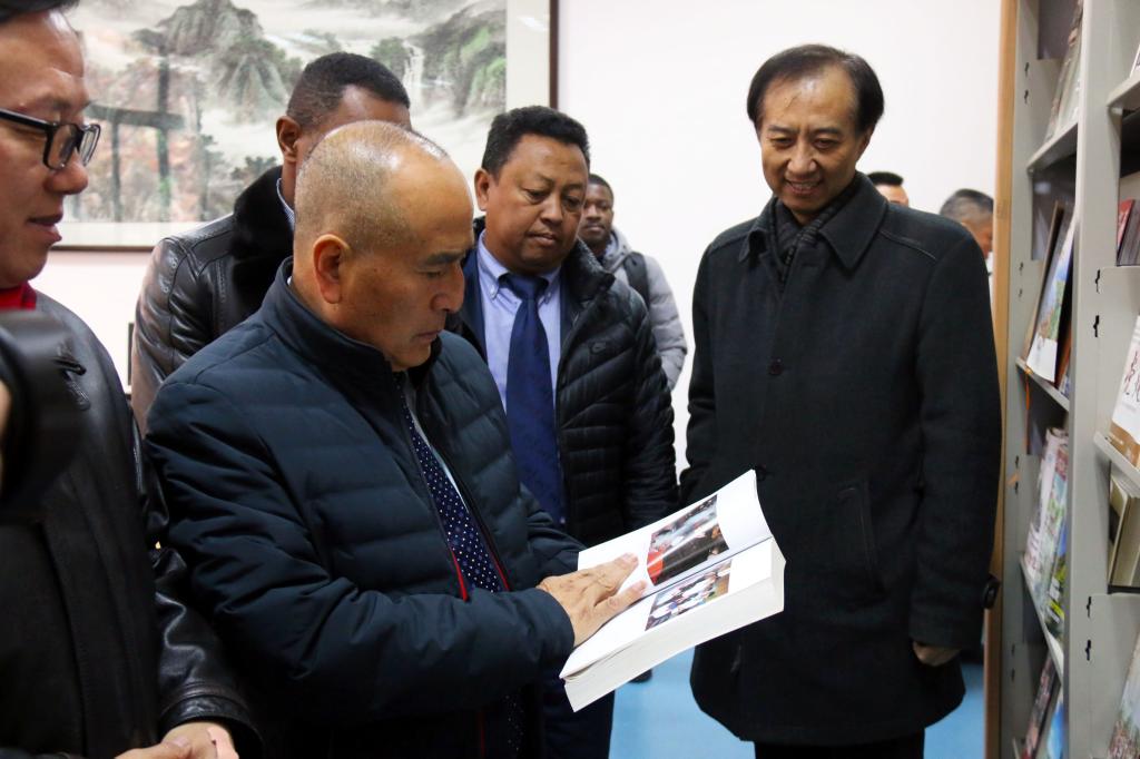 中华文化体验室、留学生阅览室、唐风汉语教室等特色教室,并合影留念。