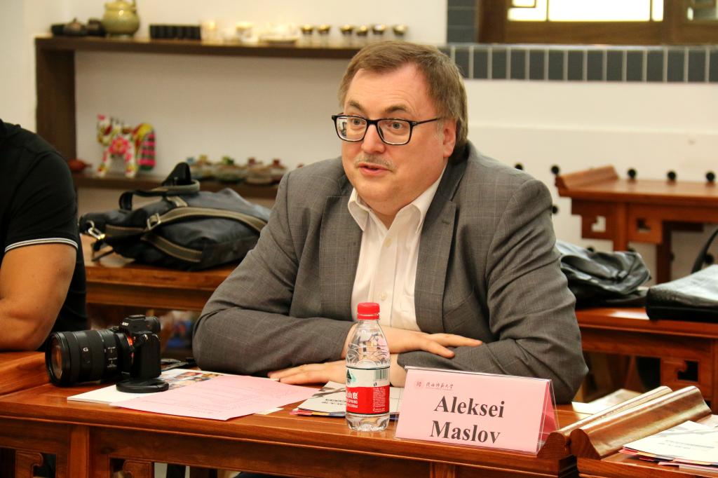 马斯洛夫教授简要介绍了俄罗斯高等经济大学的历史沿革及办学情况,他表示,随着中国“一带一路”倡议的不断推进,横跨亚欧两大洲的俄罗斯与中国之间的交往日益密切,两国之间的商贸合作项目增加、旅游市场不断发展壮大,越来越多的俄罗斯人开始学习汉语,汉语及中国文化在俄罗斯文化生活中扮演了越来越重要的角色。马斯洛夫教授介绍说,近年来俄罗斯高等经济大学已经与北京师范大学、上海大学、复旦大学等中国高校开启了校际合作交流,积累了一定的合作经验,学校希望继续开拓中国留学生市场,积极探索与中国高校的合作培养模式,开展更多互利共赢的合作项目。他表示,通过近期与陕西师范大学师生的沟通交流,他对学校的教学质量非常有信心,期待日后与陕西师范大学在汉语教师师资培训、学生互换、短期项目合作、学生海外实习基地建设等方面开展更为深入的交流。