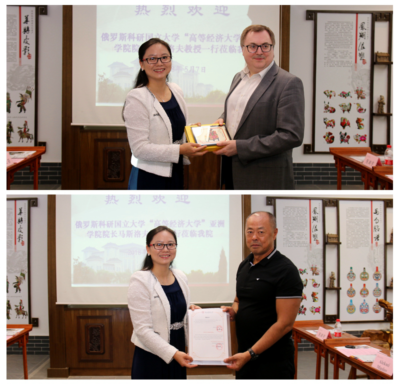 会上,马斯洛夫教授向我校留学生管理办公室工作人员详细咨询了学校中国政府奖学金生及陕西师范大学外国留学生奖学金生的招收录取情况,并表示俄罗斯高等经济大学有意向来年向我校推荐高质量的学历留学生在校就读。